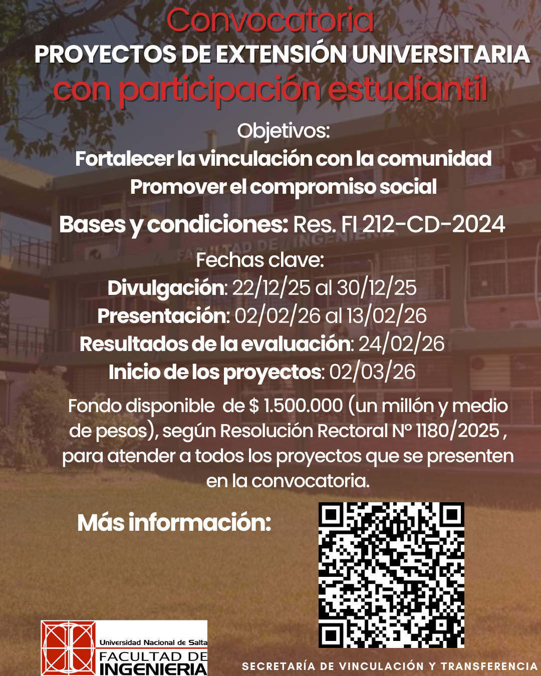 Convocatoria: Proyectos de Extensión Universitaria con participación estudiantil Publicado en Avisos. Estudiantes Docentes