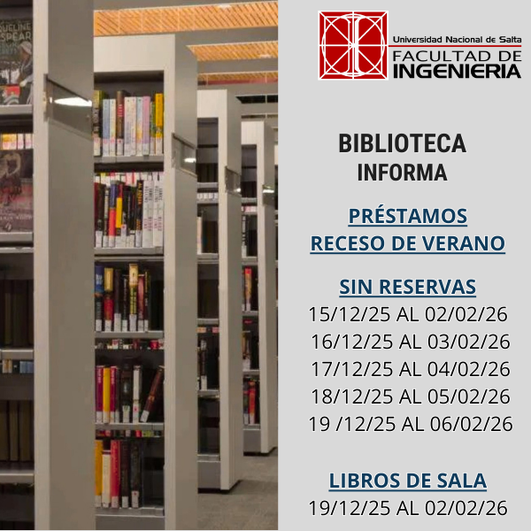 Biblioteca Informa - Préstamos Receso de Verano Publicado en Avisos Biblioteca. Egresados Estudiantes Docentes No Docentes