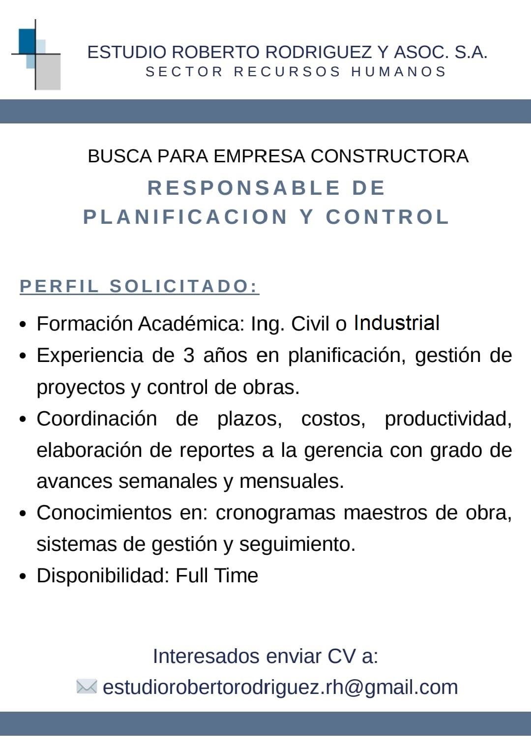 - Búsqueda Laboral. Indasa S.A. Jefe de Mantenimiento Vehicular. Técnico/Ingeniero Mecánico o Electromecánico
